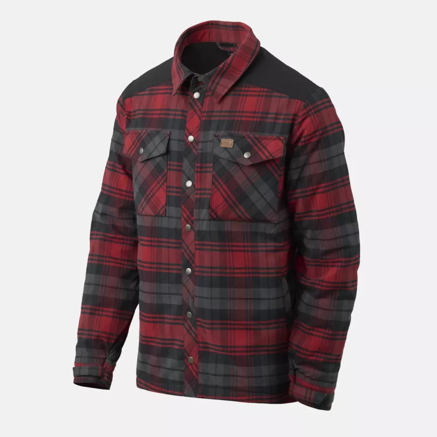 Klasyczna kraciasta koszula w nowej odsłonie. Zastosowano w niej szybkoschnące, syntetyczne materiały i lekkie wypełnienie o gramaturze 60 g/m2, więc koszula sprawdzi się tam, gdzie zimowa kurtka to za dużo, a wiatrówka lub anorak nie wystarczy. Koszula ma łącznie siedem kieszeni. Wewnątrz są dwie pojemne kieszenie np. na czapkę i rękawiczki. Na zewnątrz ma dwie kieszenie piersiowe, dwie kieszenie na ręce i jedną płaską kieszonkę na drobiazgi. Wzmocnione barki chronią koszulę przed przetarciami i wilgocią. Zapięcie na zatrzaski jest wygodne i podkreśla ponadczasowy wygląd koszuli.